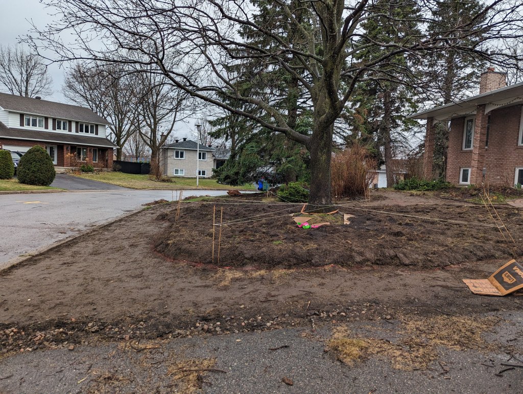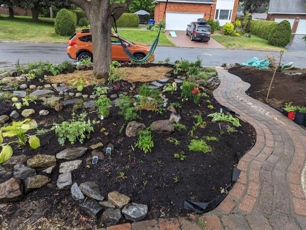 The first patch we converted from lawn in our garden was the dreaded “right of way” area of our front yard, which sees heavy foot traffic and deposits of winter salt and ice left by city ploughs, where I thought no plants would ever survive a winter season.