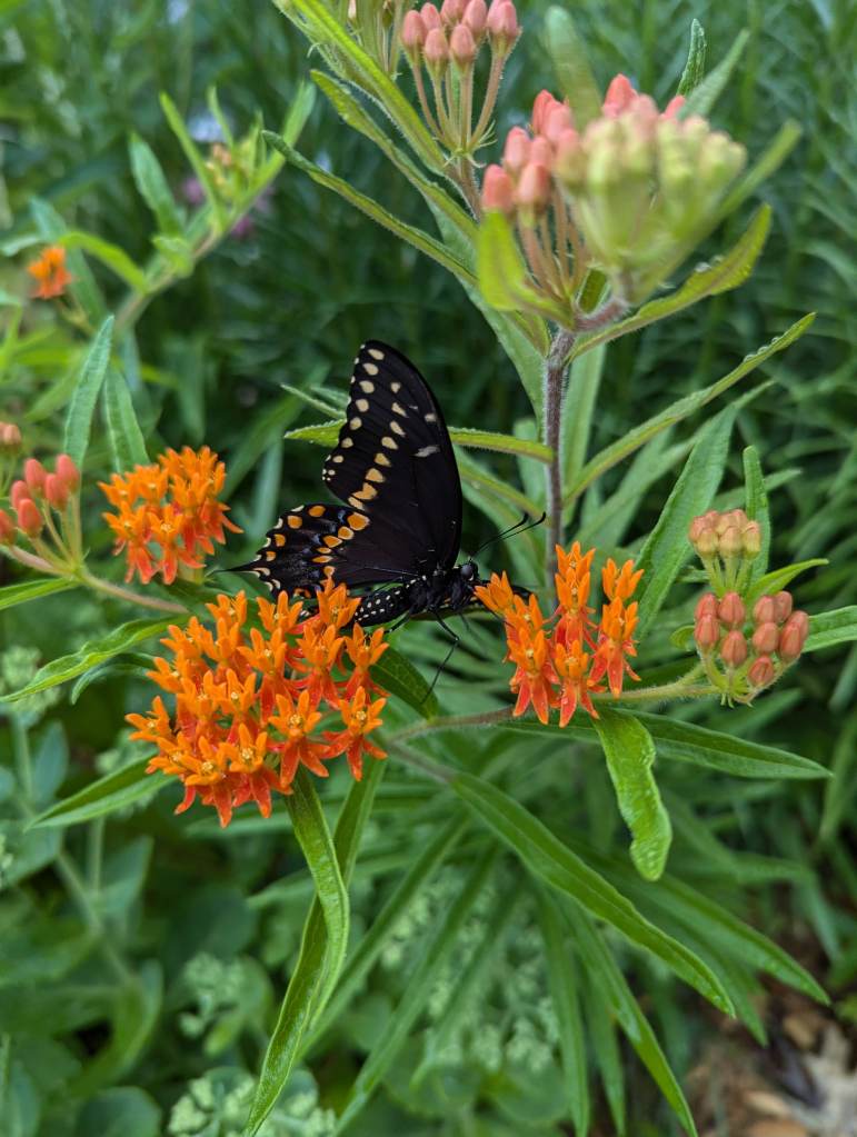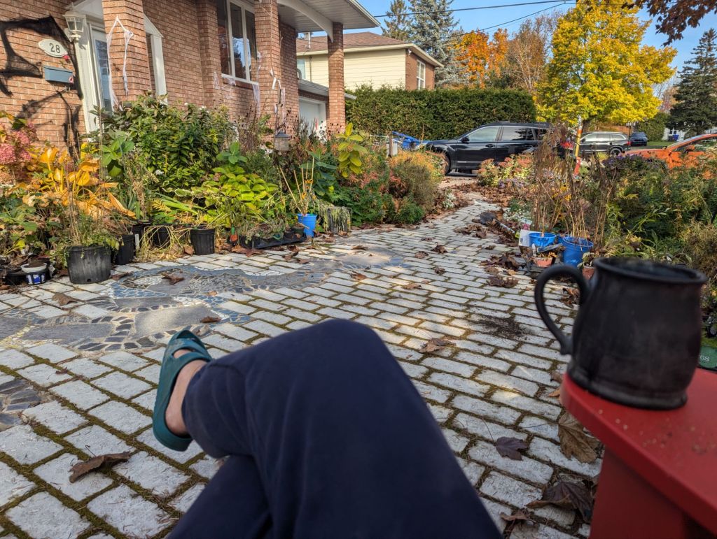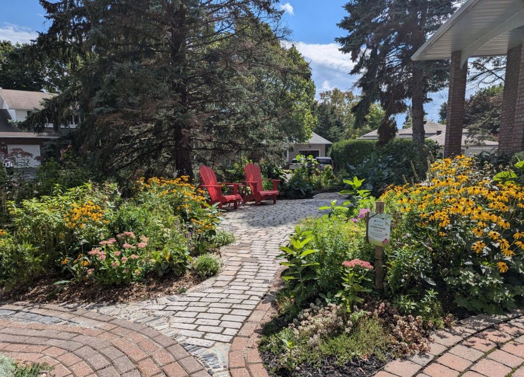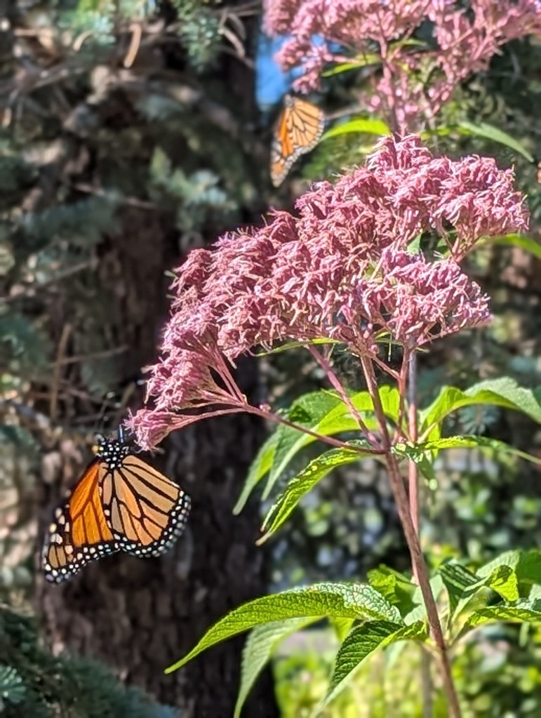 It’s fall, and it doesn’t look as pretty now as it did in spring or summer, but there are so many seeds, dried flower heads and berries surrounding me, and the birds and squirrels and bunnies and bees and butterflies have lots of food to forage for here, and their harvest will continue all winter long, so they return.