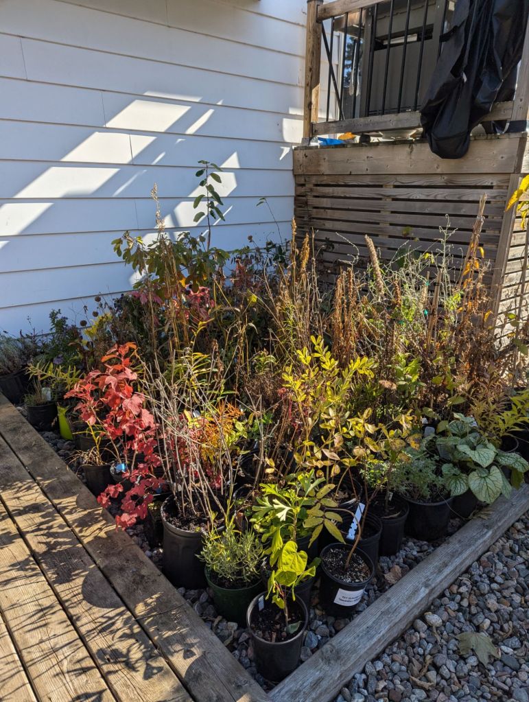 Anyone who knows me knows that I grow a LOT of plants. I left behind most of my gardens this fall, but also brought a lot of plants with me so I can start again in spring. This is one of many plant loads that made the trek from our old home to our new home.