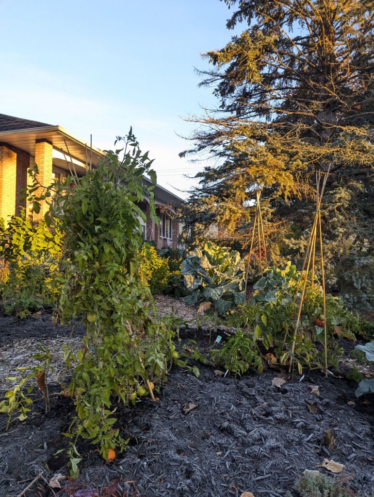 Last year I experimented with growing more tomato plants than we needed, and placing some in random parts of your yard, outside our little veggie patch, to see if we could get them to grow in different conditions, with different lights, soil, and companion plants. They did NOT disappoint, and we had more than enough to share buckets of tomatoes with neighbours.