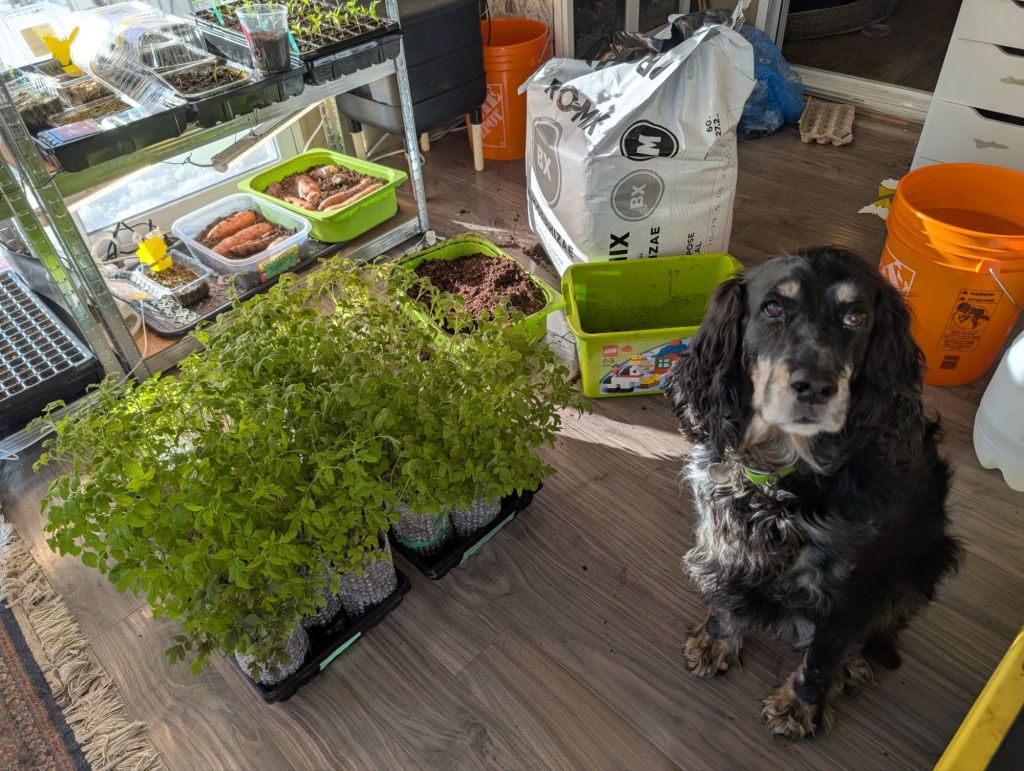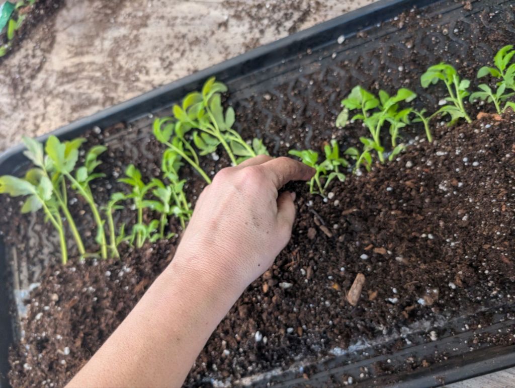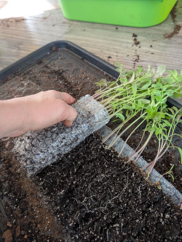I’m experimenting with some of the taller, currently leggier varieties by burying their stem in a loose “L” shape. If these particular ones root on such an angle, their root mass should support some very large, healthy plants.