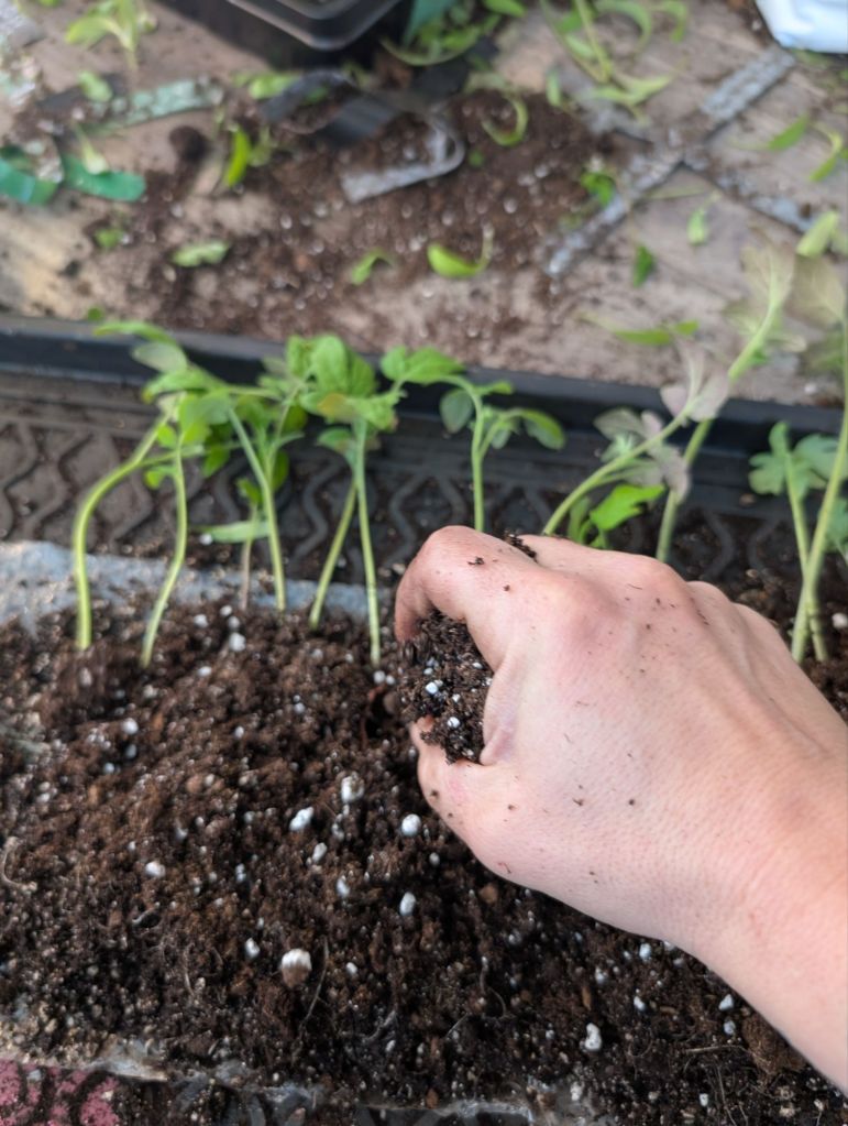 Up-potting plants growing in soil snails is kind of awesome. It’s still a pain in the ass especially with so many many to do at once, but I can let my brain float away to dreamy places and enjoy the feeling of my hands in dirt.