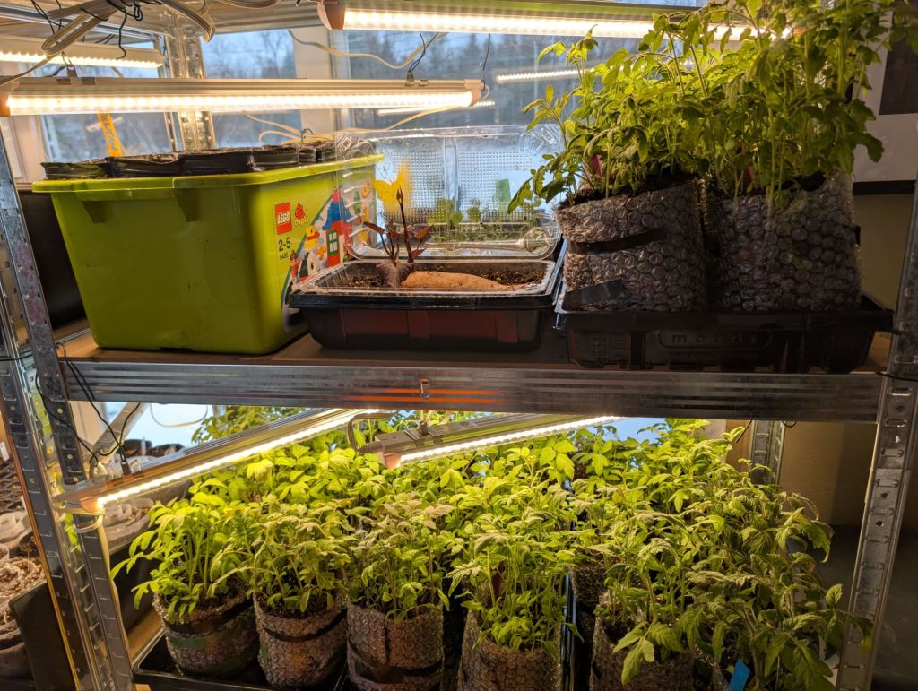 Since they seem to be doing so well, I’ve added a strong fan to them to encourage their stems to grow thicker instead of taller, while the roots slowly expand along the newly buried parts of stems.