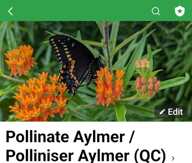 Any and all levels of knowledge and involvement are welcome. Join our new public Facebook Group “Pollinate Aylmer / Polliniser Aylmer (QC)” if you want to learn more and get involved: