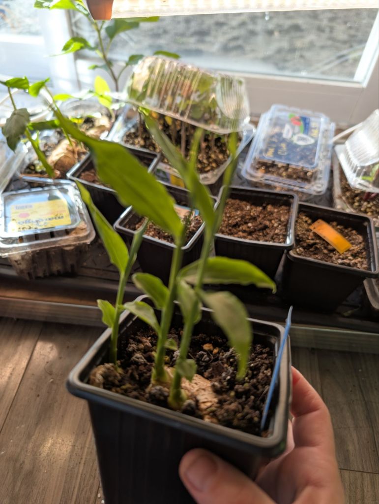 I like to grow things from seed. I think that’s obvious. I also enjoy making things from grocery stores grow, and sometimes they surprise me. They are fun experiments my 5 year old likes to participate in, so we always have some random named pots of hers growing. I think she’s currently trying cherries and apple seeds, which over-wintered in the greenhouse.