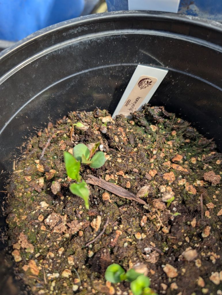 Instead I brought some of my winter sown native pots inside the greenhouse, sped up their germination, and I’ve been enjoying watching them pop up their little leaves probably weeks ahead of when they would be doing it outside.