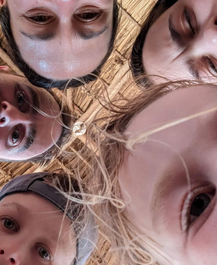 As I was standing, so as to continue failing at twisting my butterfly wing, I was above her, and saw her record a short scribble, of what seemed like a single word, which she was circling over and over, presumably to remember later. I wasn’t quite close enough to read the word, so I asked what she was writing. That took her focus off me just as finally, after what felt like hours, I managed to untwist the wing and put it back on. Unfortunately I missed the shoulder elastic, so it was still wrong, but I was happy to have made progress.