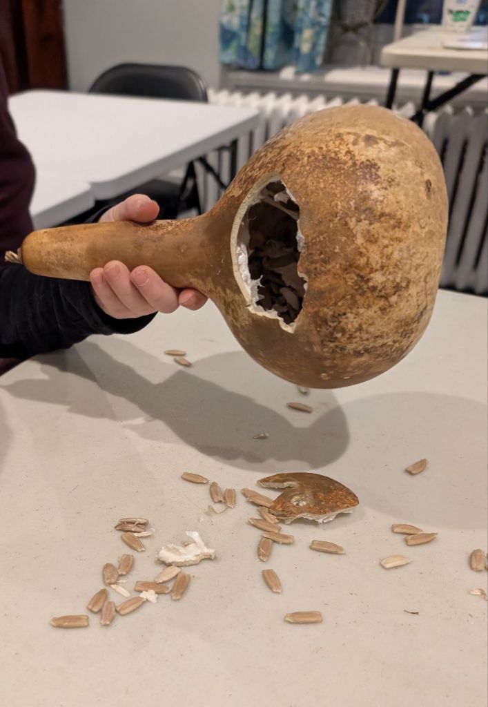 Grâce au soutien précieux des PSA , nous nous réunissons à la Maison communautaire d’Aylmer quelques fois par semaine pour prendre le thé, tout en nettoyant, triant et emballant des semences. Nous avons même reçu l’aide de participants à nos récents ateliers, et certains ont tellement aimé l’expérience qu’ils reviennent maintenant nous prêter main-forte.