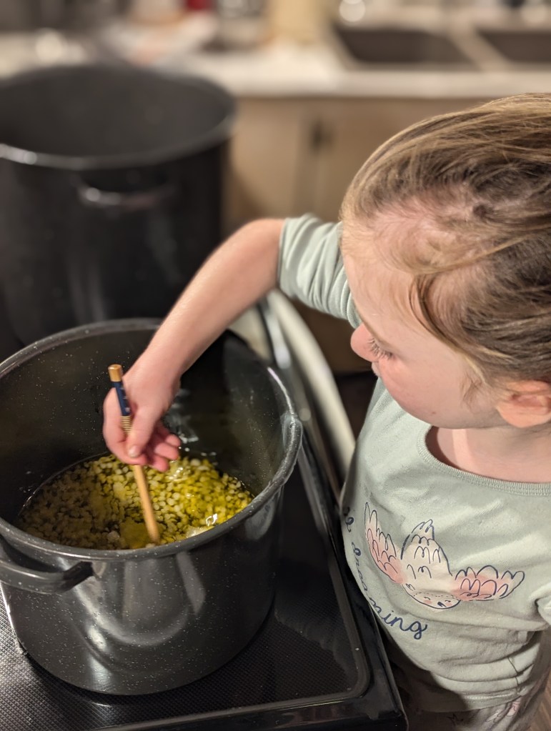 The kids create salves using their home made infusions of native and medicinal plants, collected and dried from our expansive gardens. This year, they used beeswax from Bob Valcov, a famous local bee keeper.
